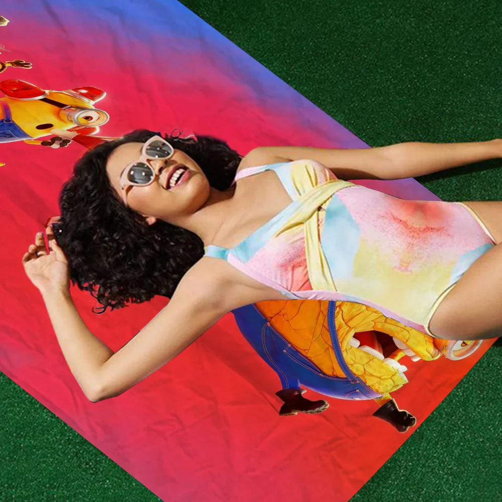 Enjoy the fun and comfort of this cute Banana Minions microfiber beach towel! Perfect for swimming, yoga, mountain climbing, and more, this soft, quick-dry towel is your ideal companion for outdoor activities.